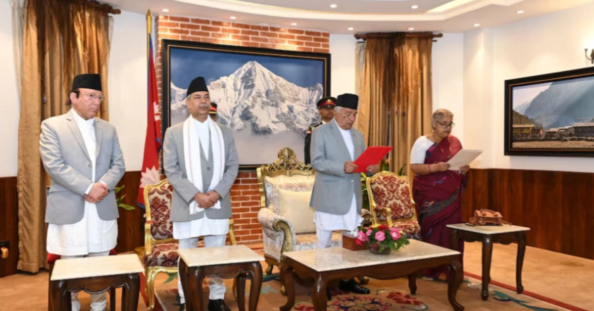 সোমবার রাজধানী কাঠমান্ডুতে প্রেসিডেন্ট রামচন্দ্র পৌডেল তিন গুরুত্বপূর্ণ মন্ত্রীকে শপথবাক্য পাঠ করান। অগ্নিদগ্ধ প্রেসিডেন্ট ভবনের সামনে খোলা আকাশের নিচে এই অনুষ্ঠান অনুষ্ঠিত হয় এবং সরাসরি টেলিভিশনে সম্প্রচারিত হয়।
