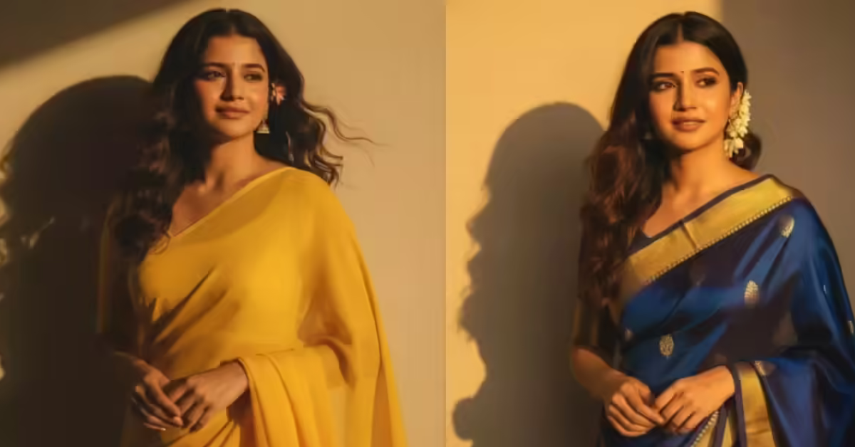 শাড়ি শুধু এক অংশ; আসল বলিউড-স্টাইল লুক তৈরি হয় ব্যাকগ্রাউন্ড দিয়েই।